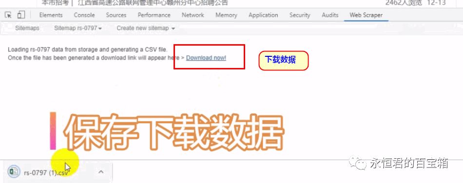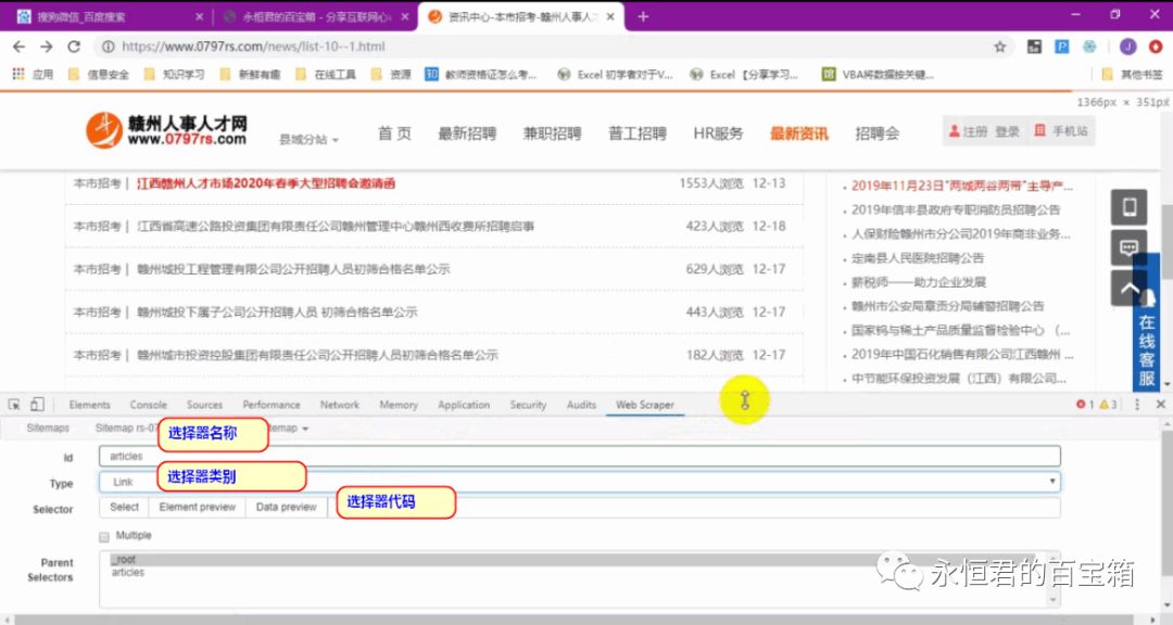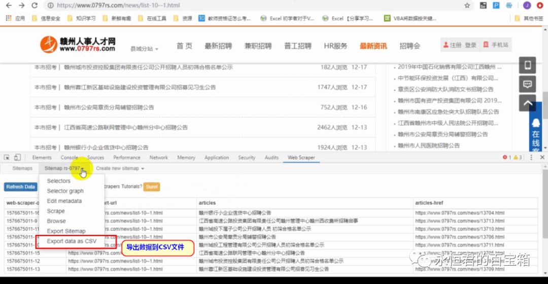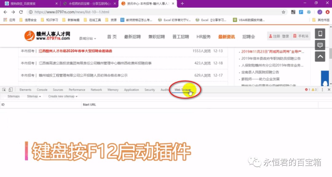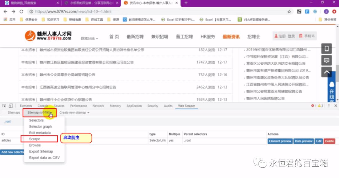 键盘按F12,点击“web scraper”即可。