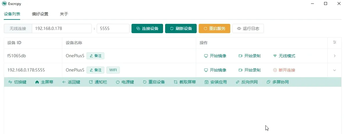 打开 Escrcpy,等待设备自动识别。在设备列表中选择要控制的手机,点击“开始镜像”即可。